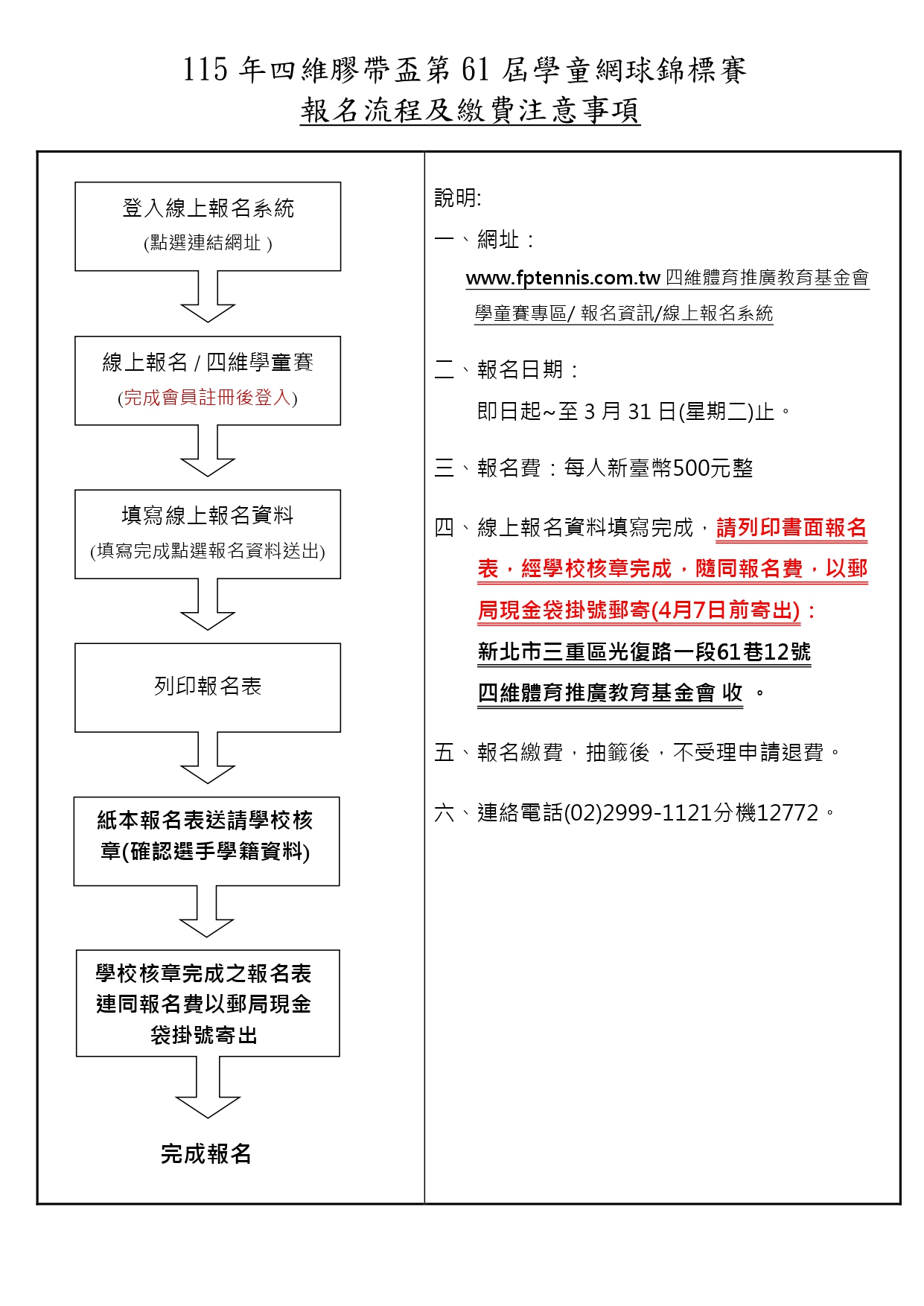 四維膠帶盃第61屆學童網球錦標賽報名公告